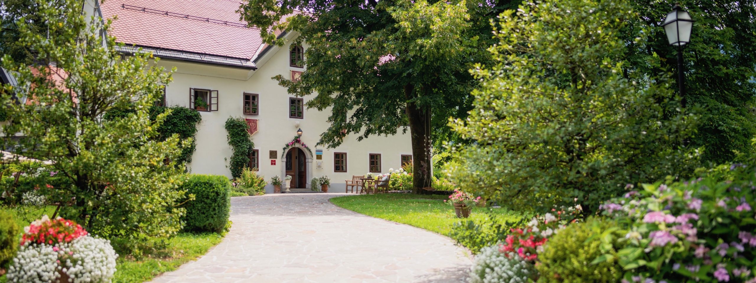 Podeželski dvorec v Spodnji Idriji, oživljen v duhu minulih časov.